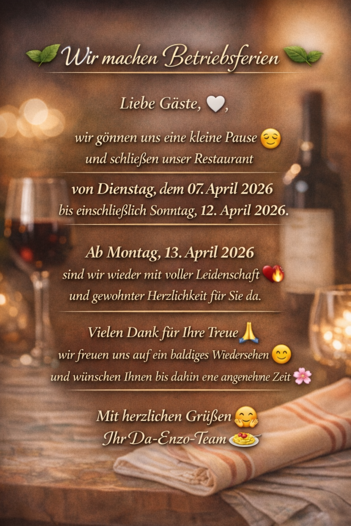 🍽️ Buon appetito – das Ristorante Da Enzo heißt Sie von Herzen willkommen. 🍽️